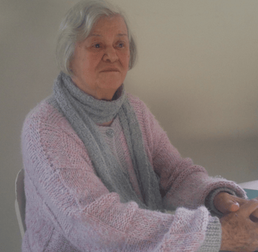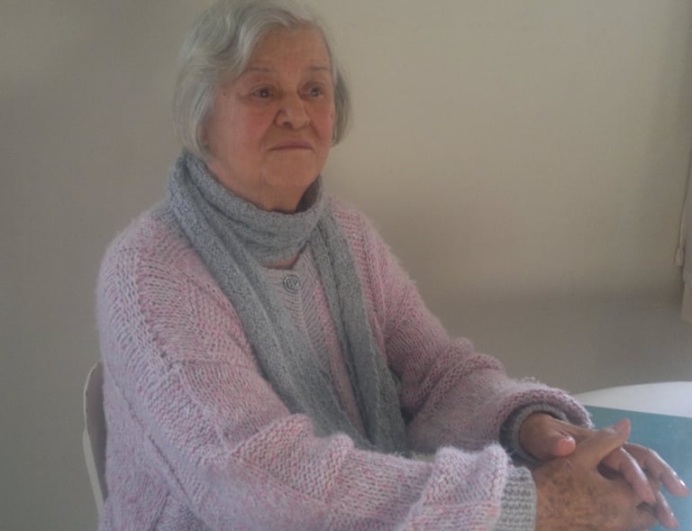 Antonieta Garzillo, que com tanto carinho compartilhava seu talento em aulas de tricô na Fundação. Nesta foto, aparece usando uma de suas próprias peças, uma lembrança que guardamos com gratidão.